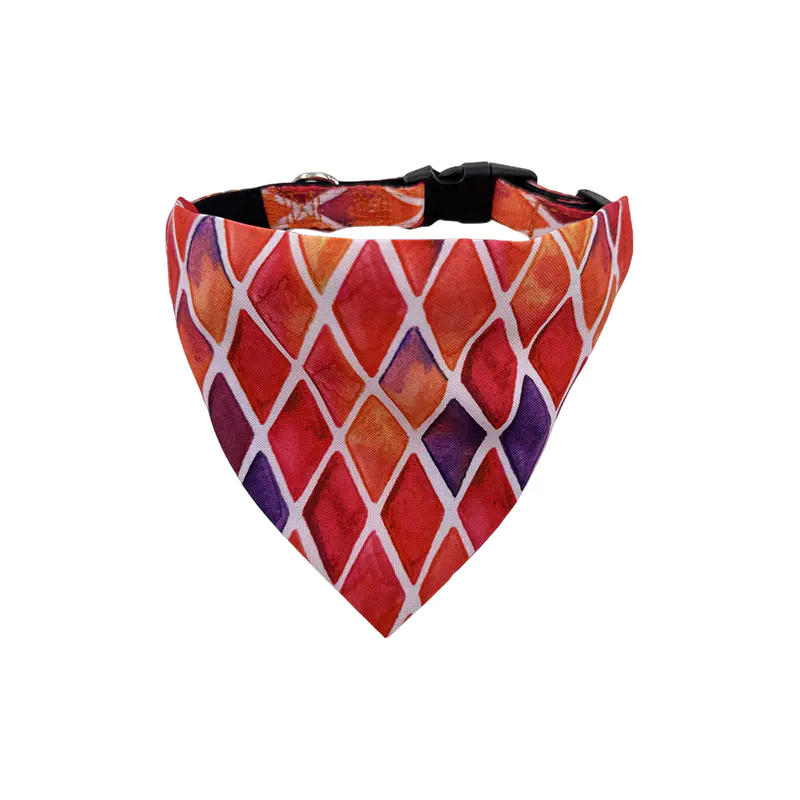 Is ábhar luxurious é síoda le haghaidh bandanas peataí, achomharc a dhéanamh d'úinéirí peataí a thugann tosaíocht do bhealach agus do chompord. Soláthraíonn mothú bog agus snasta síoda eispéireas céadfach uathúil do pheataí. Mar sin féin, tá síoda íogair agus go héasca damáiste, rud a fhágann go bhfuil sé níos oiriúnaí le haghaidh ócáidí speisialta.